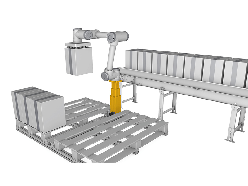 全自動(dòng)拾放處理解決方案正成為包裝站的新標(biāo)準(zhǔn)。機(jī)器人越來(lái)越多地用于碼垛箱子。 貨板上的堆垛可以從一層開始,但堆垛高可達(dá) 2 米。標(biāo)準(zhǔn)協(xié)作機(jī)器人沒(méi)有這么大的垂直工作范圍。伊維萊升降機(jī)組件提供了一種有效解決方案,可通過(guò)智能方式完成垂直軸調(diào)整,為機(jī)器人提供隨時(shí)可安裝的附加線性軸。 在在貨板上碼垛時(shí),可以升降機(jī)器人的基座尋找更好的工作位置。割曬機(jī)?